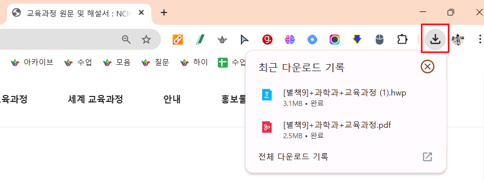 5. 다운받은 파일은 크롬웹브라우져 오른쪽 상단 다운로드 표시를 클릭하거나 내 컴퓨터의 다운로드 폴더에 있습니다.