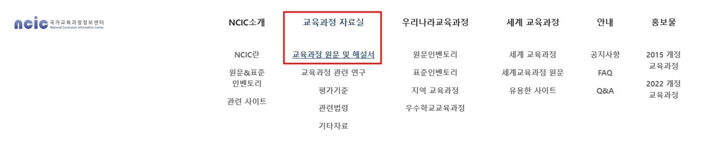 교육과정 원문 및 해설서 : NCIC 국가교육과정 정보센터