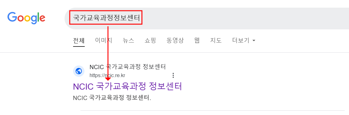 1. 크롬웹브라우져의 검색창에 '국가교육과정정보센터'라고 검색합니다.