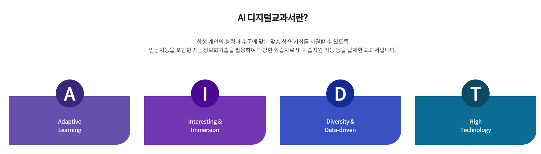 안녕하세요. AI디지털교과서가 2025년도에 영어, 수학, 정보 교과에서 활용됩니다. 이에 AI 디지털 교과서의 의미와 관련 사이트를 정리해보려고 합니다. AI 디지털교과서 의미AI 기술을 활용하여 학생 개인의 능력과 수준에 맞는 맞춤 학습 기회를 지원할 수 있도록인공지능을 포함한 지능정보화기술을 활용하여 다양한 학습자료 및 학습지원 기능 등을 탑재한 교과서입니다. AI를 가르치는 교과서는 아닙니다.AI 디지털교과서(Digital Text)로 AIDT라고도 합니다. AI 디지털교과서 추진 방향 AI 디지털교과서 웹전시본을 살펴볼 수 있는 사이트교과서민원바로처리센터2025년 2월까지는 교과서민원바로처리센터에서 영어, 수학, 정보 AI 디지털교과서를 체험할 수 있습니다.가입 무료입니다. 2025년 2월 이후..